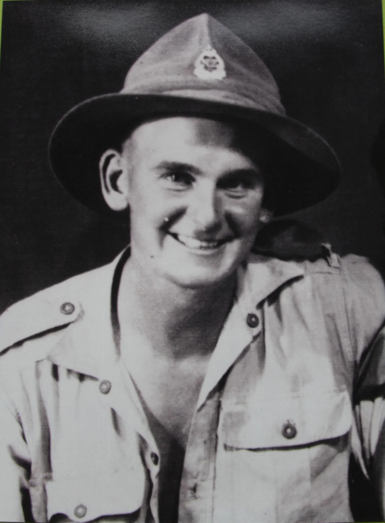 He was a 34 Year old sergeant who had asked to return to combat, sheltered behind a tree and kept shooting so his section could pull back. In the end, the butt of his rifle was blown off and he was seriously wounded and he was left for dead by the advancing Germans.