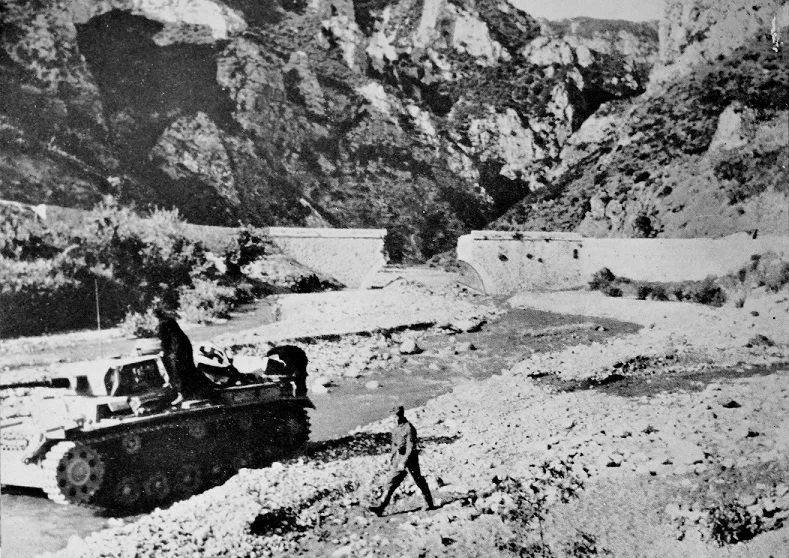 On the morning of the 24th dive bombers attacked the largely abandoned positions on the depleted defence line. German infantry advanced causing severe casualties among the Anzac defenders. In the afternoon the first two German tanks advanced crossing a repaired bridge and pushed across the area the Spartans had long ago held back the Persian invasion. The New Zealand artillery stopped them in their tracks. By late afternoon nineteen German tanks had followed, advancing on the defenders. Twelve of the panzers were destroyed by the New Zealand artillery. one Australian solider wrote “The pressure is on again and the tanks have broken through, this may be our last stand but we will have a go, goodbye just in case”. The attacked stalled when night fell. Under cover of darkness the remaining guns were disabled and the defenders withdrew.